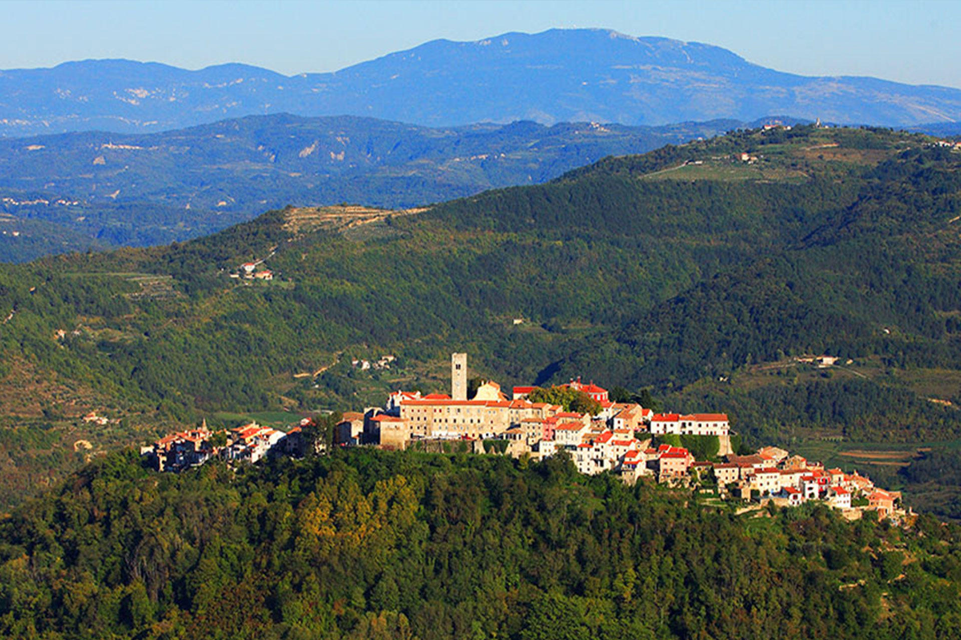 Nestled in the heart of the Istrian peninsula is Motovun, one of the region’s most enchanting towns. Perched a top a hill, it offers breathtaking views of the Mirna River Valley, endless vineyards, and the famed Motovun forest, rich with prized white truffles. With its oval layout, this charming town features well-preserved medieval city walls and towers, a grand city palace and lodge, and the parish church of St. Stephen. As you wander through its steep streets and squares, you’ll be transported back through the centuries to the Middle Ages, the Renaissance, and the Baroque era. Many of Motovun’s buildings and palaces are adorned with stone crests, marking the ownership of various noble families.